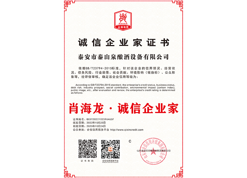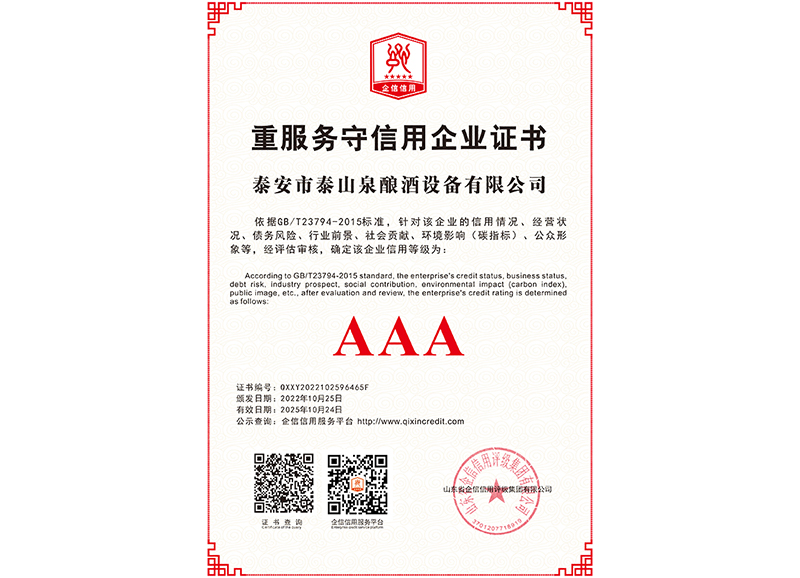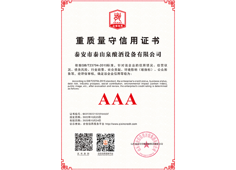 泰安市泰山泉釀酒設(shè)備有限公司,是一家專業(yè)從事釀酒設(shè)備機(jī)械化研發(fā)并集技術(shù)咨詢,工程設(shè)計,制造安裝,人員培訓(xùn)及售后服務(wù)為一體的綜合性企業(yè),本公司主要產(chǎn)品為:大曲清香、小曲清香、大曲醬香、大曲濃香等香型白酒機(jī)械化設(shè)備。  本公司與中國科學(xué)院自動化研究所簽訂技術(shù)服務(wù)合同,引進(jìn)先進(jìn)技術(shù),研究生產(chǎn)全自動化機(jī)械釀酒設(shè)備,由中國科學(xué)自動化研究所的技術(shù)支持,打造最先進(jìn)的生產(chǎn)釀酒設(shè)備,公司有信心打造全國最先進(jìn)白酒...